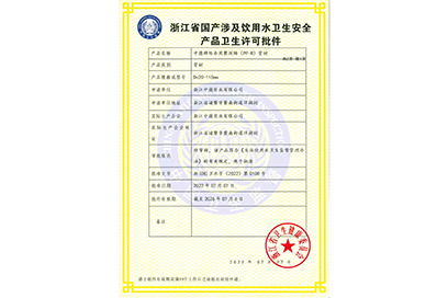 浙江省國產涉及飲用水衛生安全產品衛生許可批件